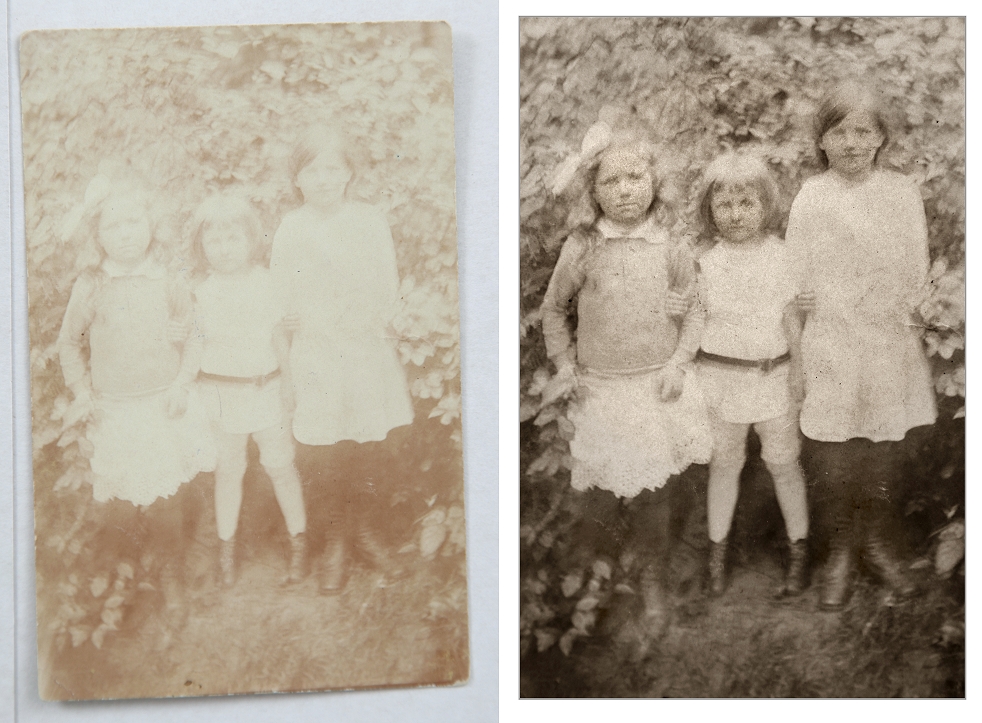Restaurationsergebnis dieses stark verblichenen, über 100 Jahre alte Fotos,