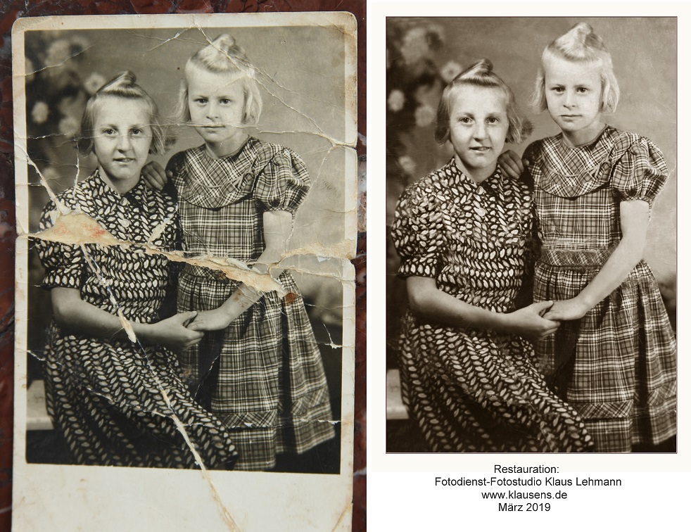 von Rissen und Knicken, Wegretuschieren von unwichtigen Bildelementen, Nachbauen